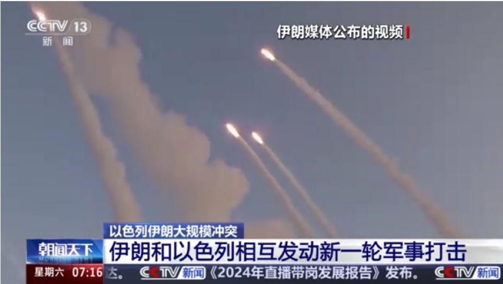 6月21日,央视国际消息,伊朗和以色列相互发动新一轮军事打击。(央视国际)